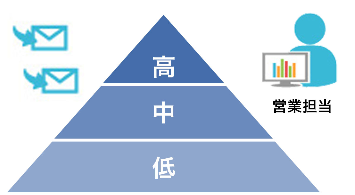 • 確度が高い顧客以外の顧客にはメールで一括アプローチを行い、直接営業アプローチの効率を上げたい。